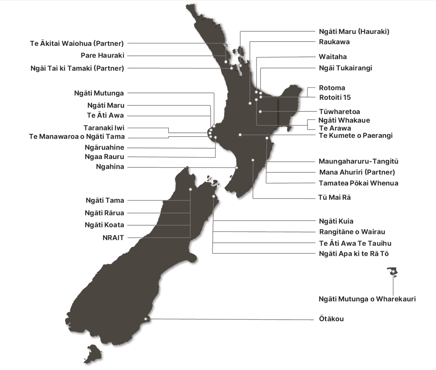*Note: map locations are indicative only and do not represent partners full rohe.