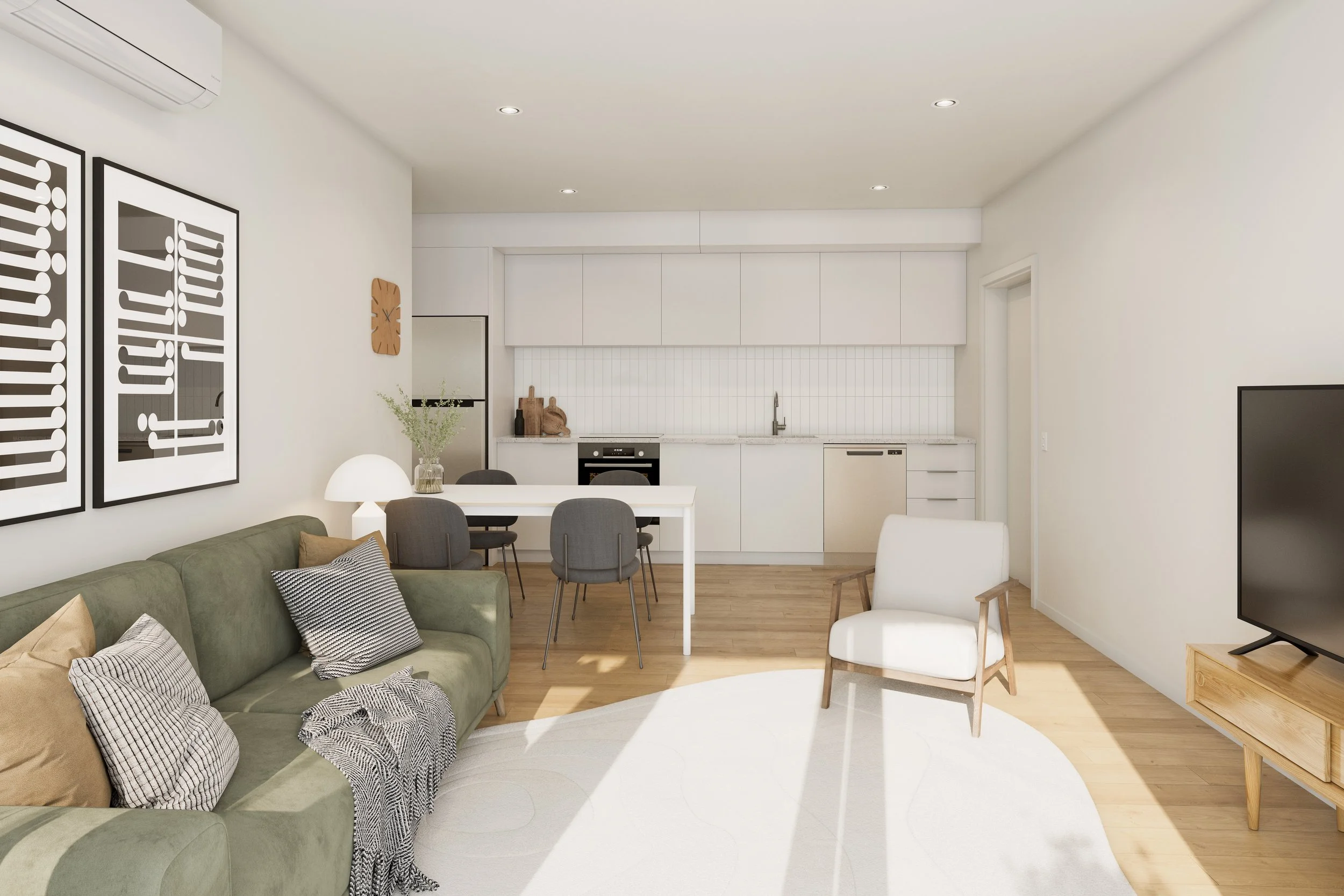 The apartments are designed with a strong focus on sustainability and urban living. Including energy and water efficient appliances with onsite solar generation to reduce consumption and lower resident utility costs, minimised waste through effective waste management and recycling, secure storage for bikes to encourage sustainable modes of transport, and native and fruit bearing trees and green fences to improve local biodiversity and air quality.